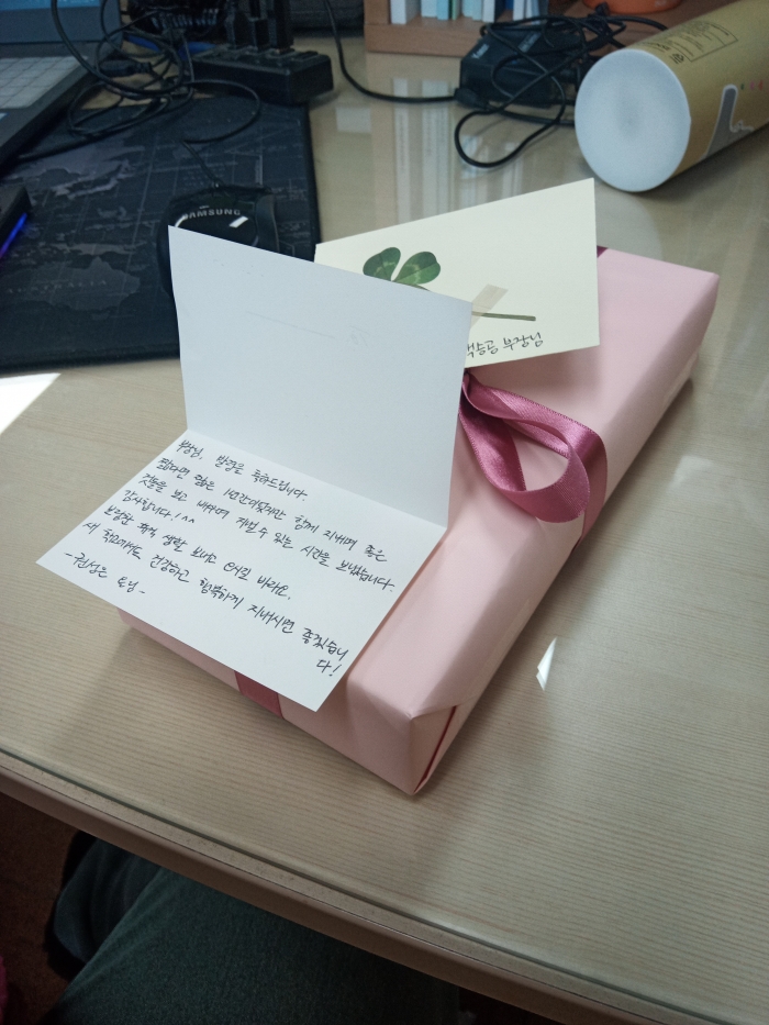 `더 나은 학교육과정 함께 디자인하기 협의회`가 있어 왔다. ![]() READ : 65 PHOTO : 1 2024.02.13. 15:37:48 같은 사무실 선생님이 주신 선물.