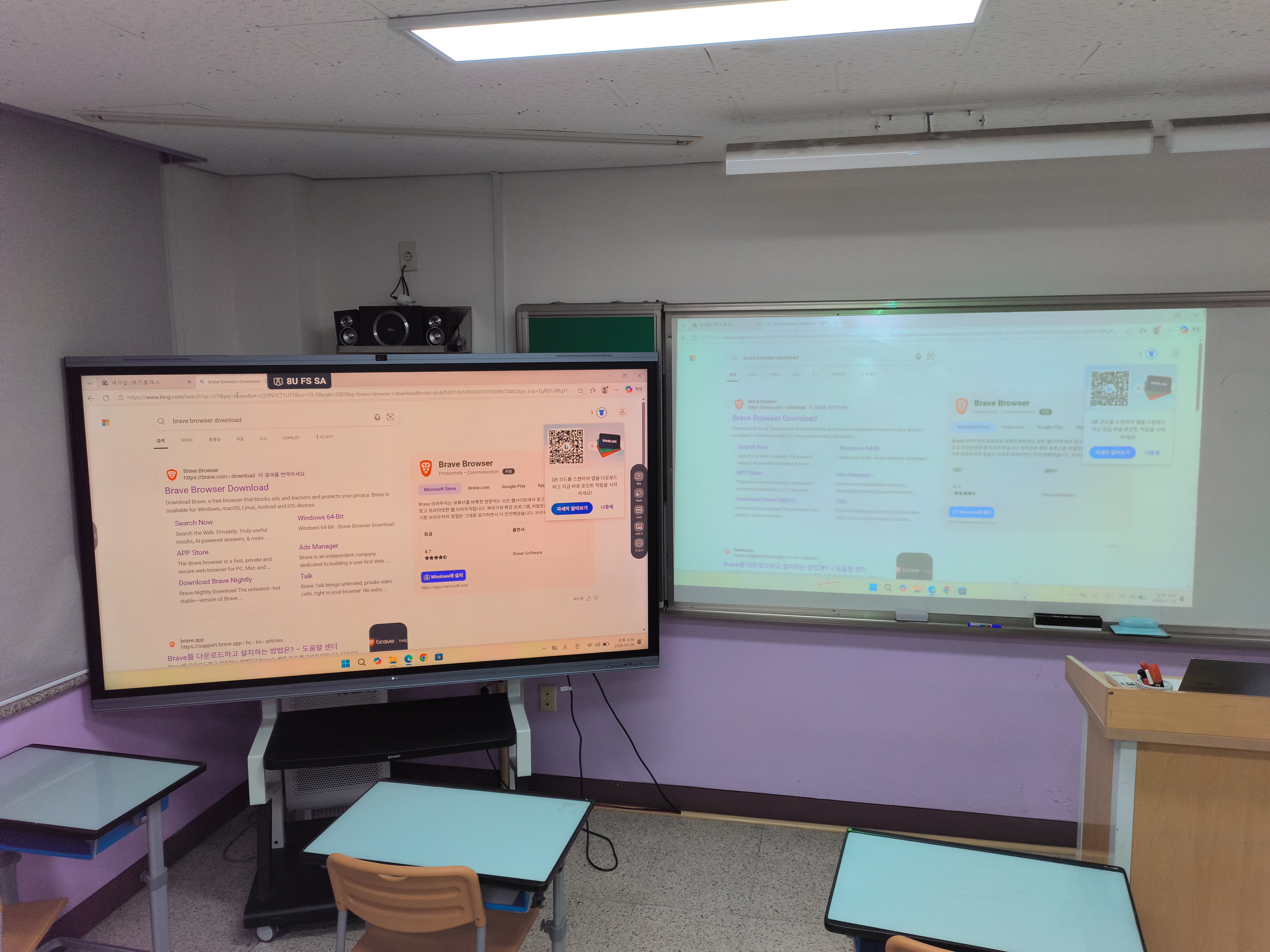 | 3학년 3반 비디오 프로젝터 상태가 좋지 않은 편입니다. 내용 연수 때문에 교체는 어려운 상황인데 다행히 그 반에는 전자칠판이 있습니다. 게다가 화면 크기도 거의 비슷합니다. 훨씬 더 선명하고 밝습니다. 안 쓸 이유가 없어요~ ![]() |