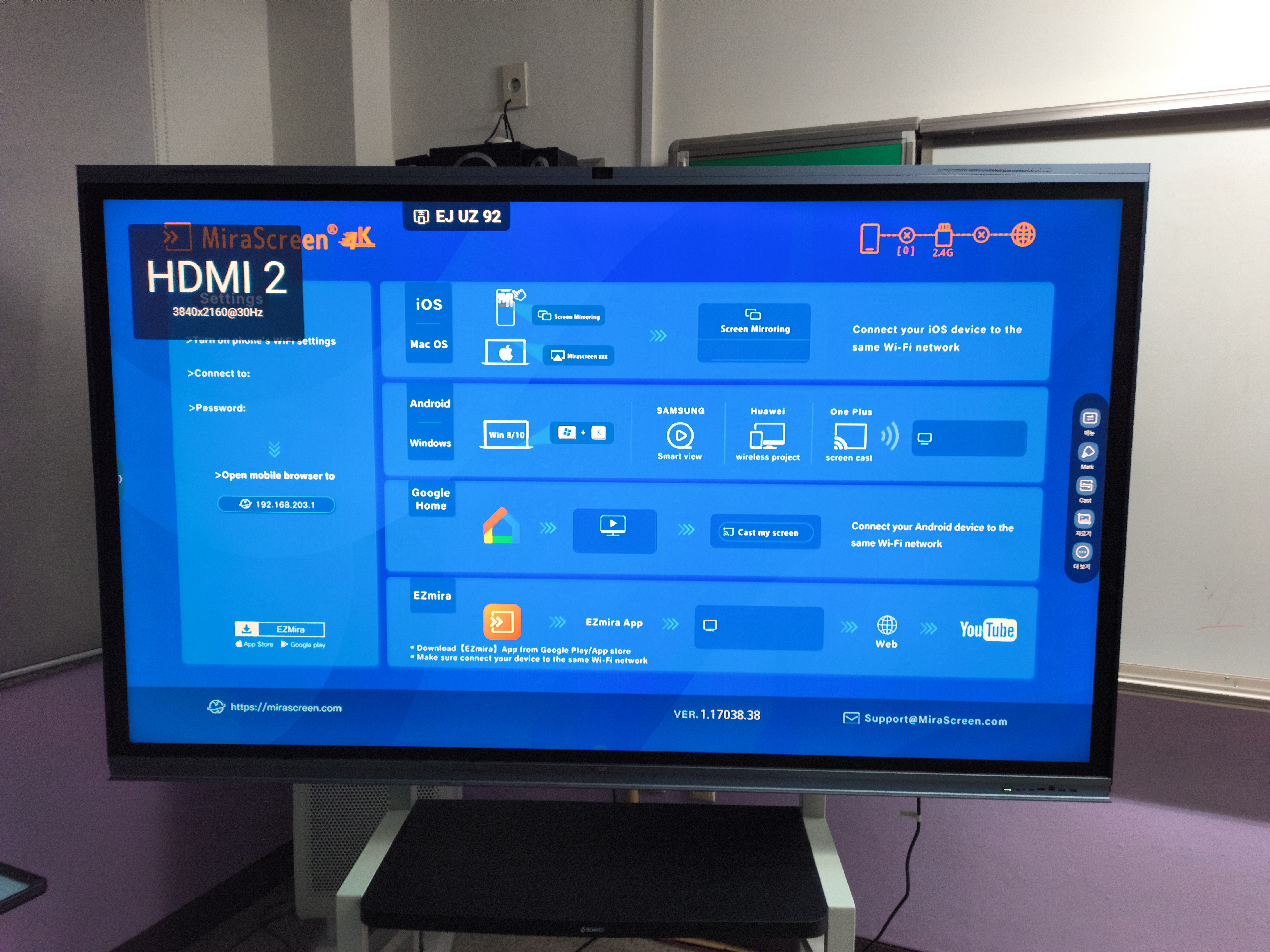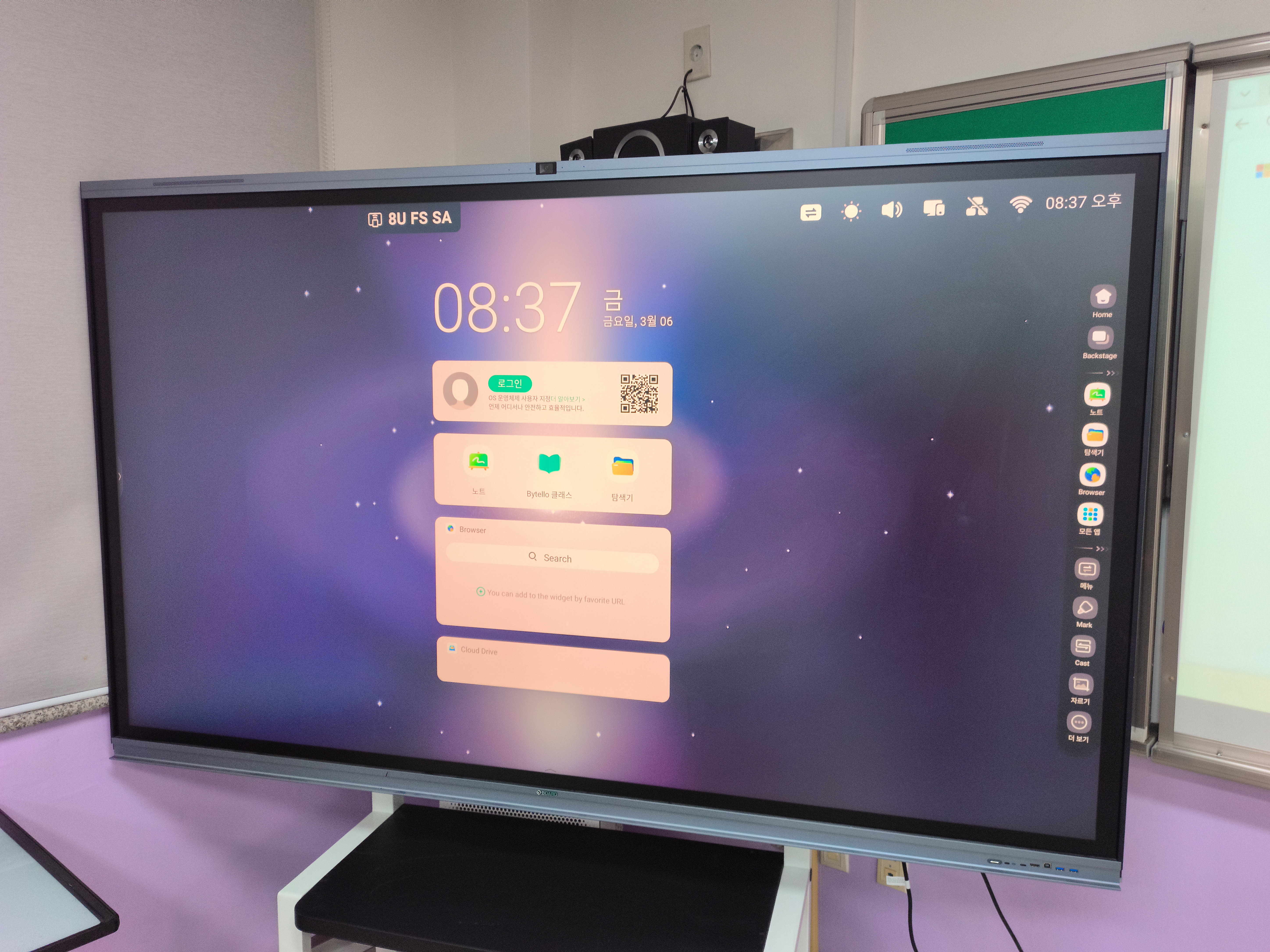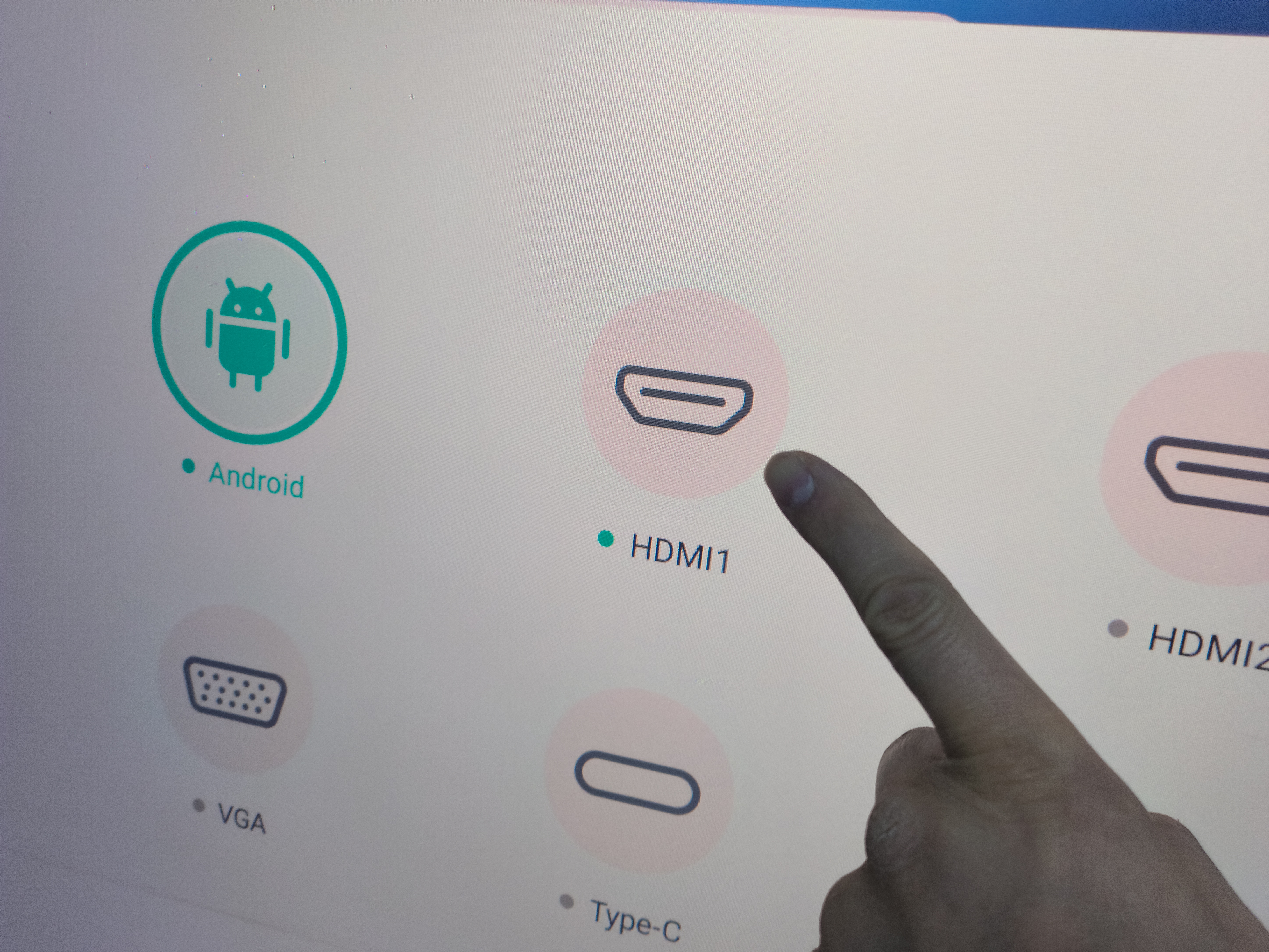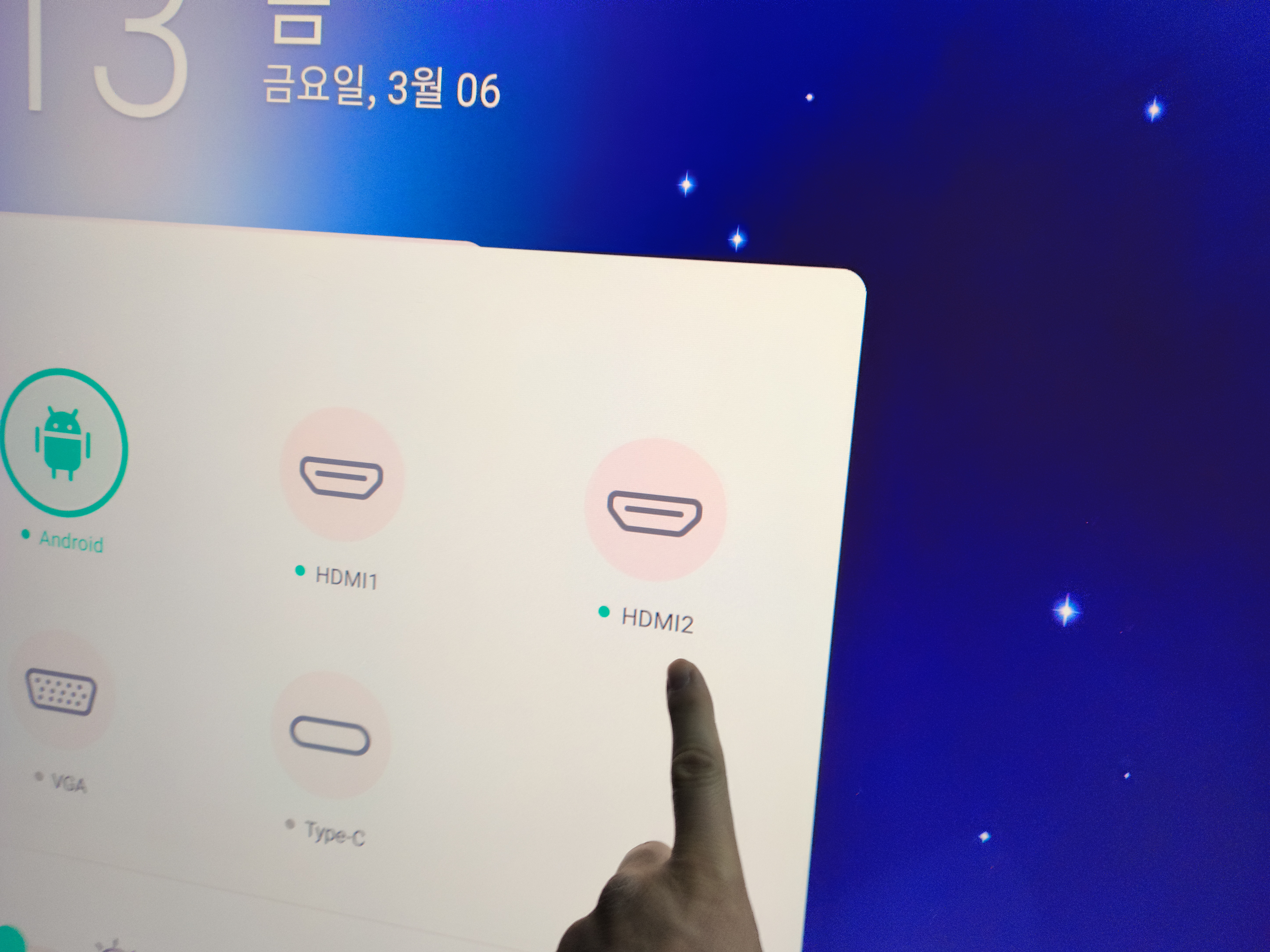 | 기본화면 기본 화면은 안드로이드 화면입니다. 이전에 사용하신 선생님에 따라 HDMI1이나 HDMI2가 선택되어 있을 수도 있습니다. ![]() |