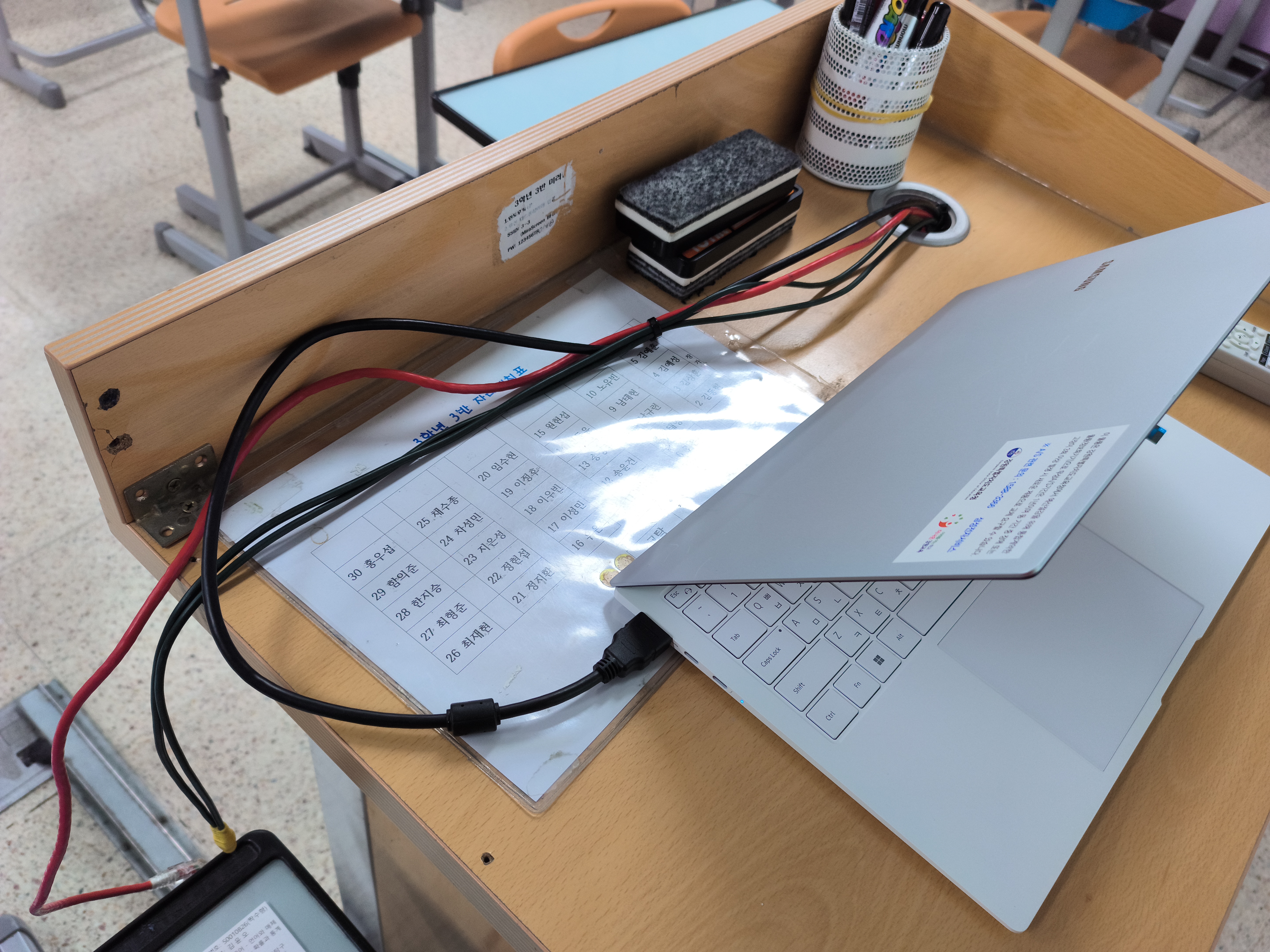 | 노트북 활용 교탁 위의 HDMI 케이블을 노트북에 연결합니다. ![]() |